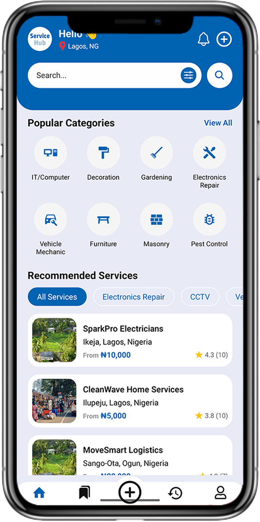Search for the services of your choice, filtering based on location, category, etc.
